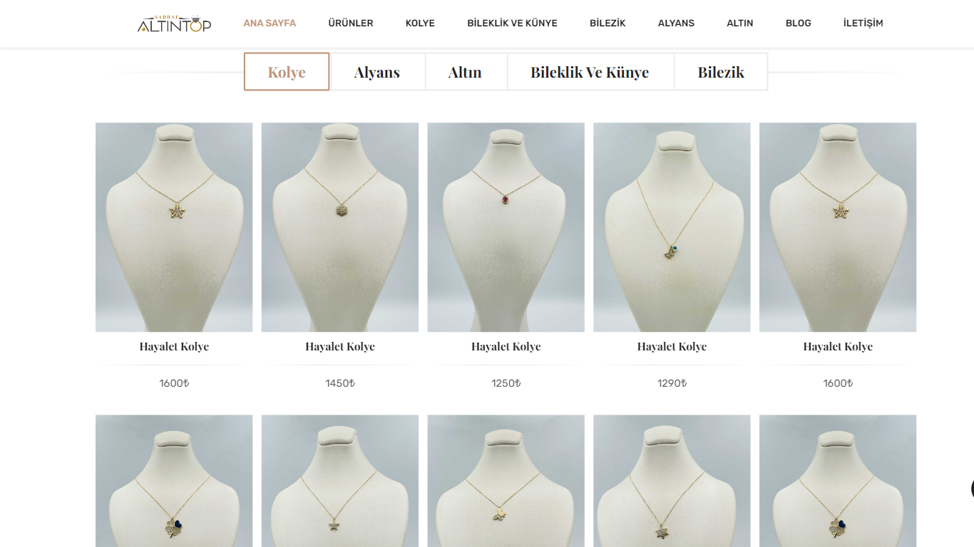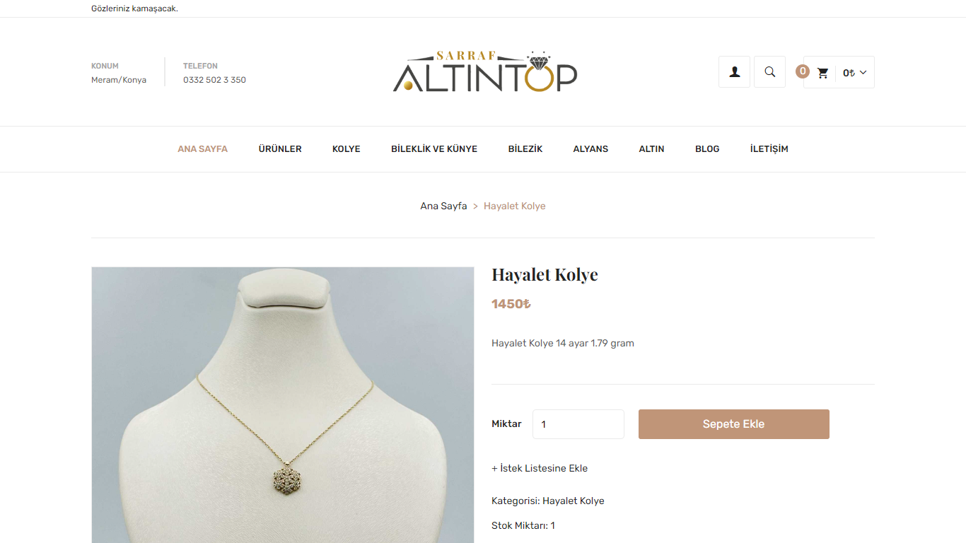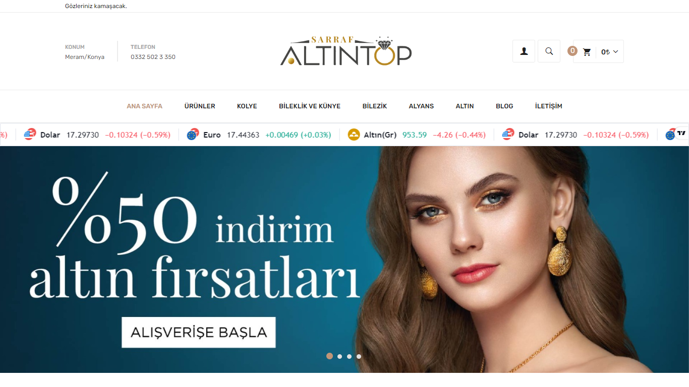 Takı, mücevherat, altın, gümüş vb. ürünler satışı yapılan e-ticaret web sitesi.
