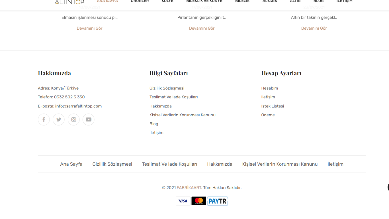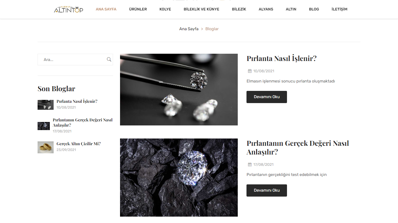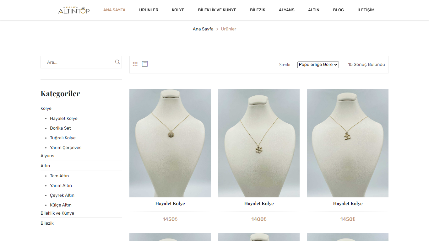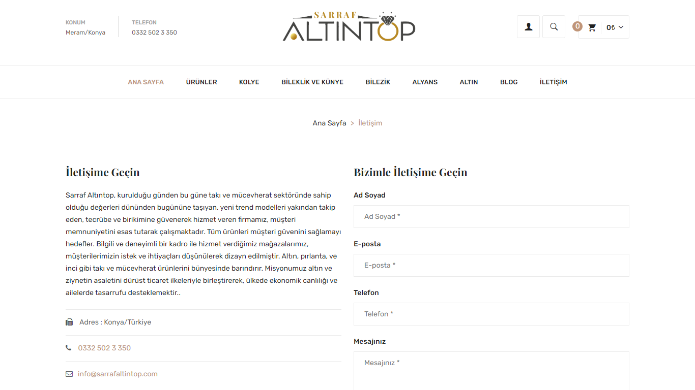 Takı, mücevherat, altın, gümüş vb. ürünler satışı yapılan e-ticaret web sitesi.